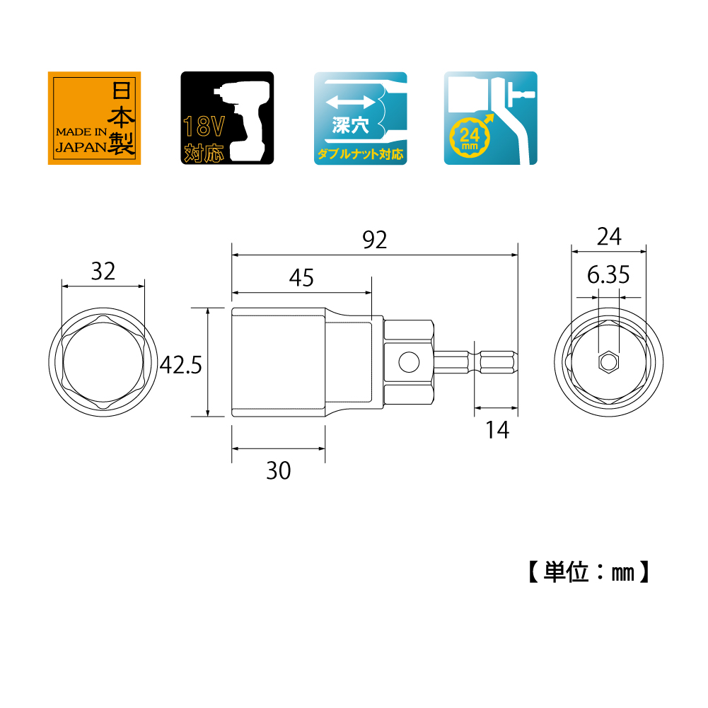 TOP Kogyo EDS-32C Compact socket (large diameter) (32mm) | EMINKH.COM