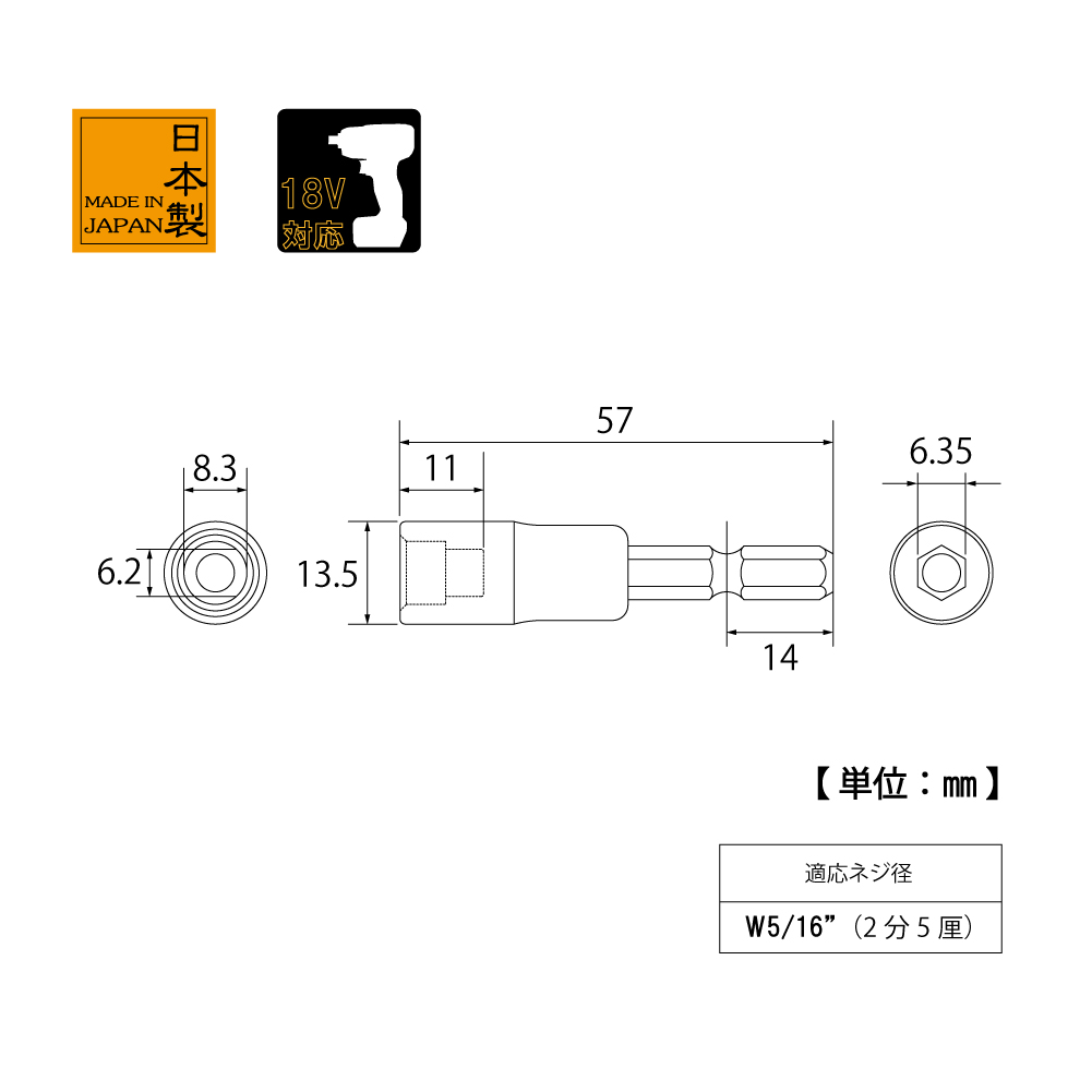 TOP Kogyo EJS-2.5 Axle foot socket (W5 / 16inch (2/5)) | EMINKH.COM