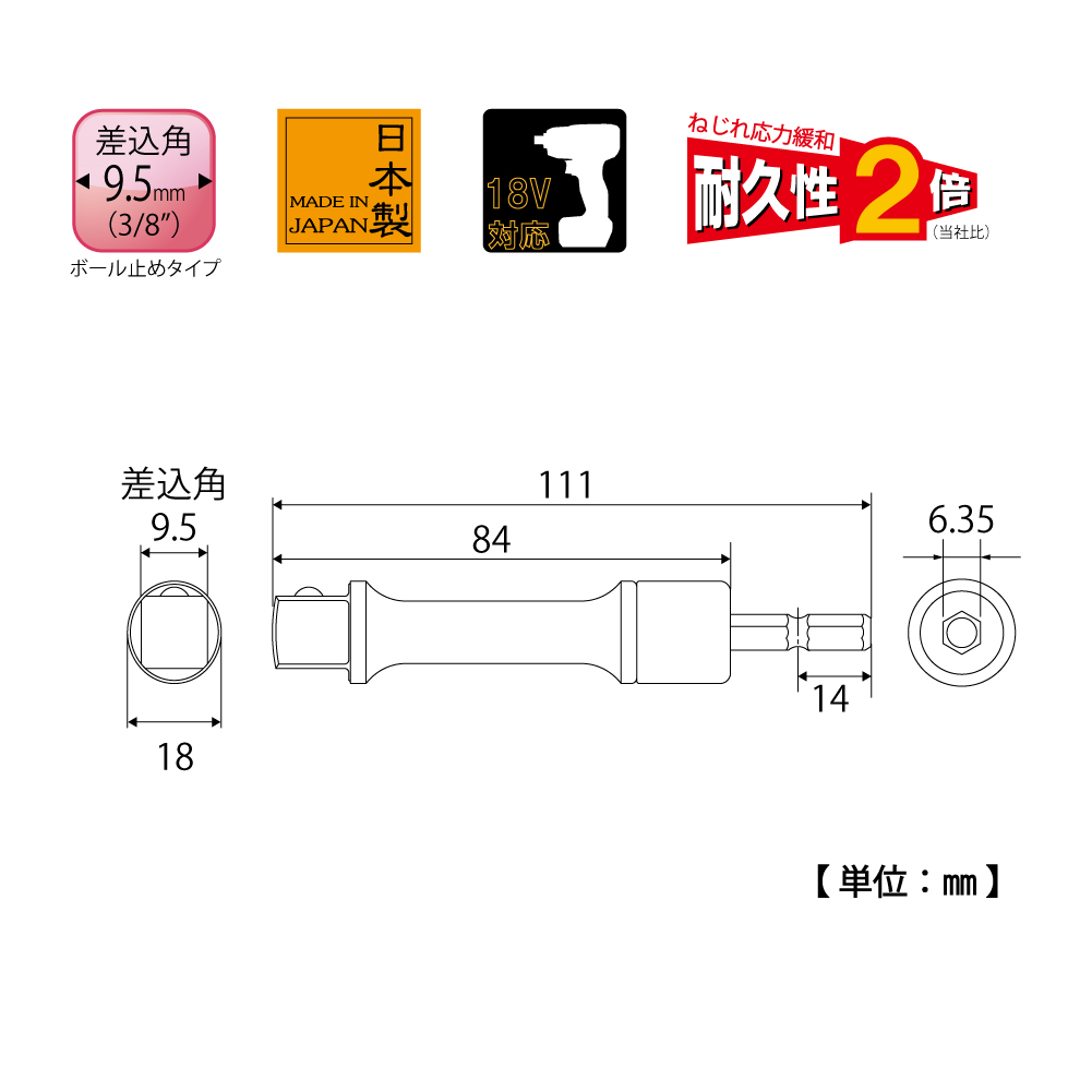TOP Kogyo ESA-3DXL Alpha Socket Adapter Long Type (3/8", 110mm) | EMINKH.COM