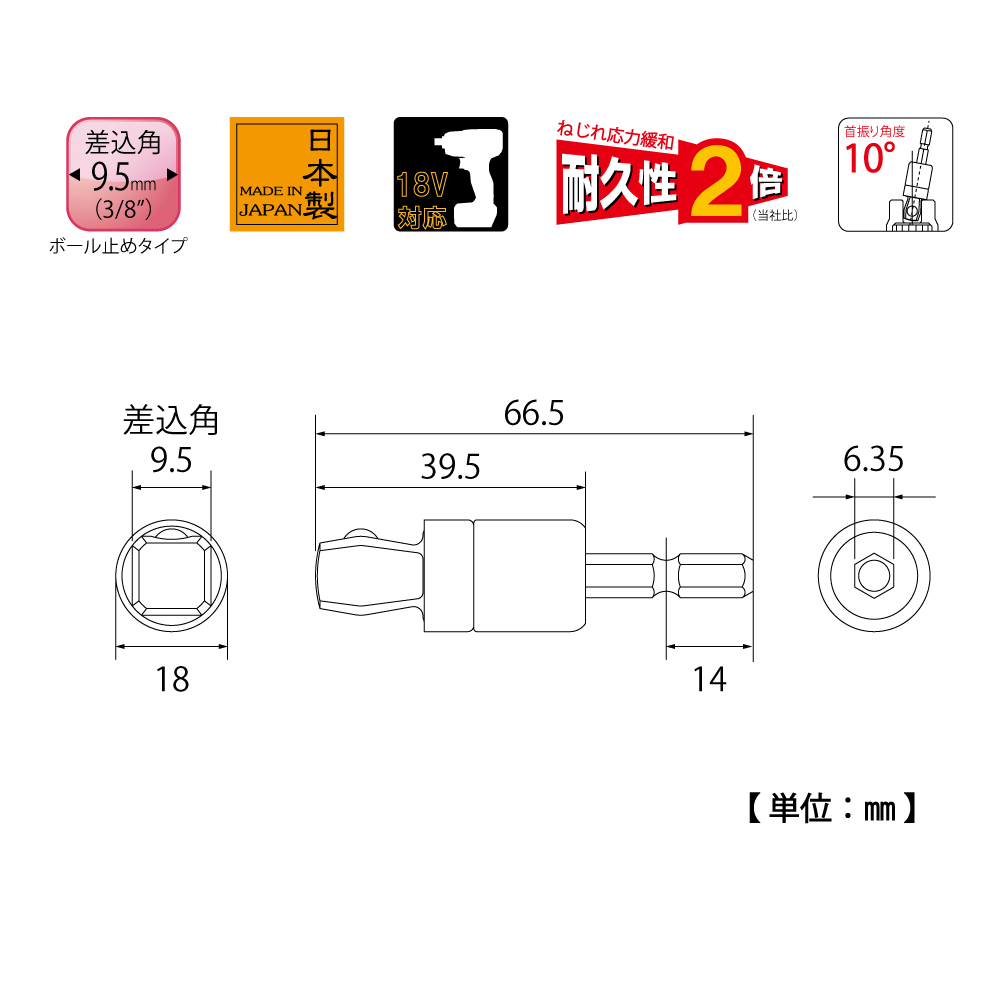 TOP Kogyo ESA-3FX Alpha Flex Socket Adapter (3/8", 10°) | EMINKH.COM