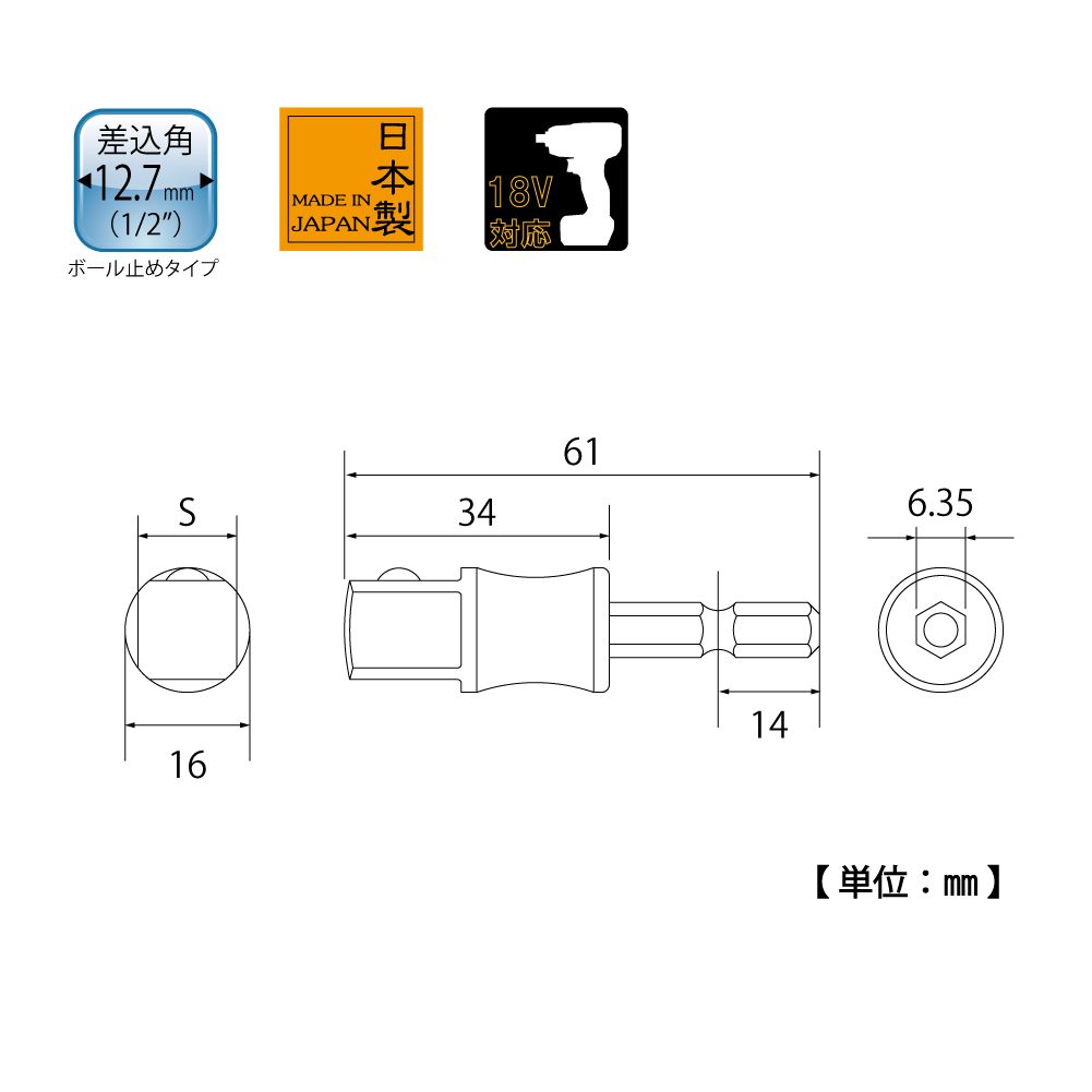 TOP Kogyo ESA-4D Socket Bit Adapter (61mm) | EMINKH.COM