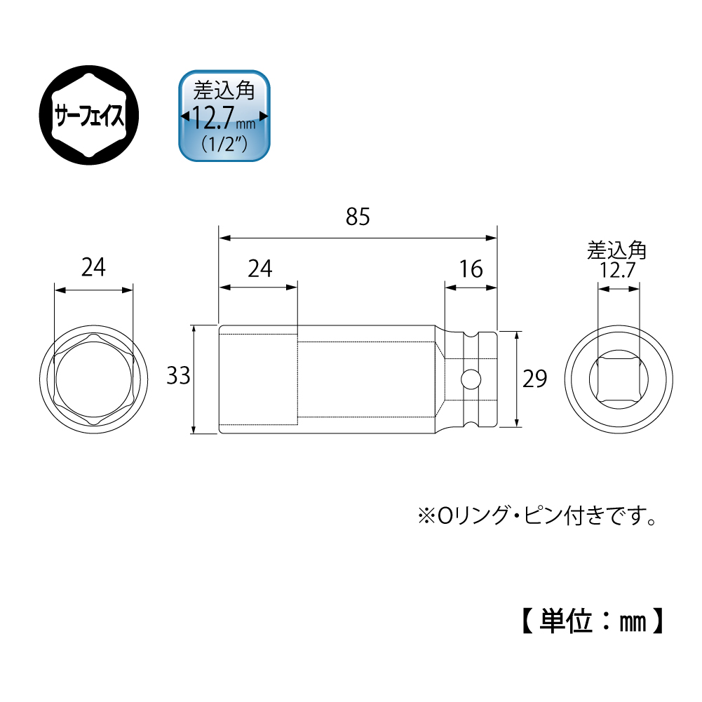 TOP Kogyo PT-424SL Super Long Impact Socket (1/2'', 24mm) | EMINKH.COM