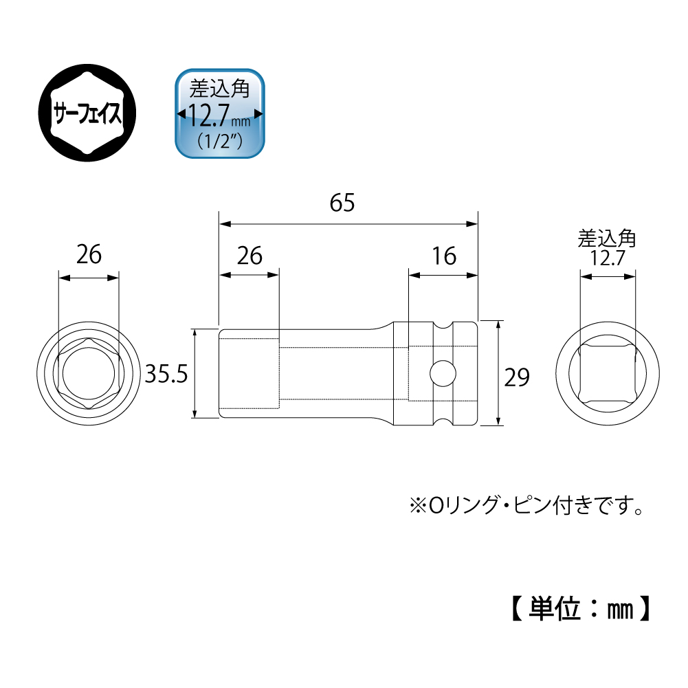 TOP Kogyo PT-426L Impact Deep Socket (1/2'', 26mm) | EMINKH.COM