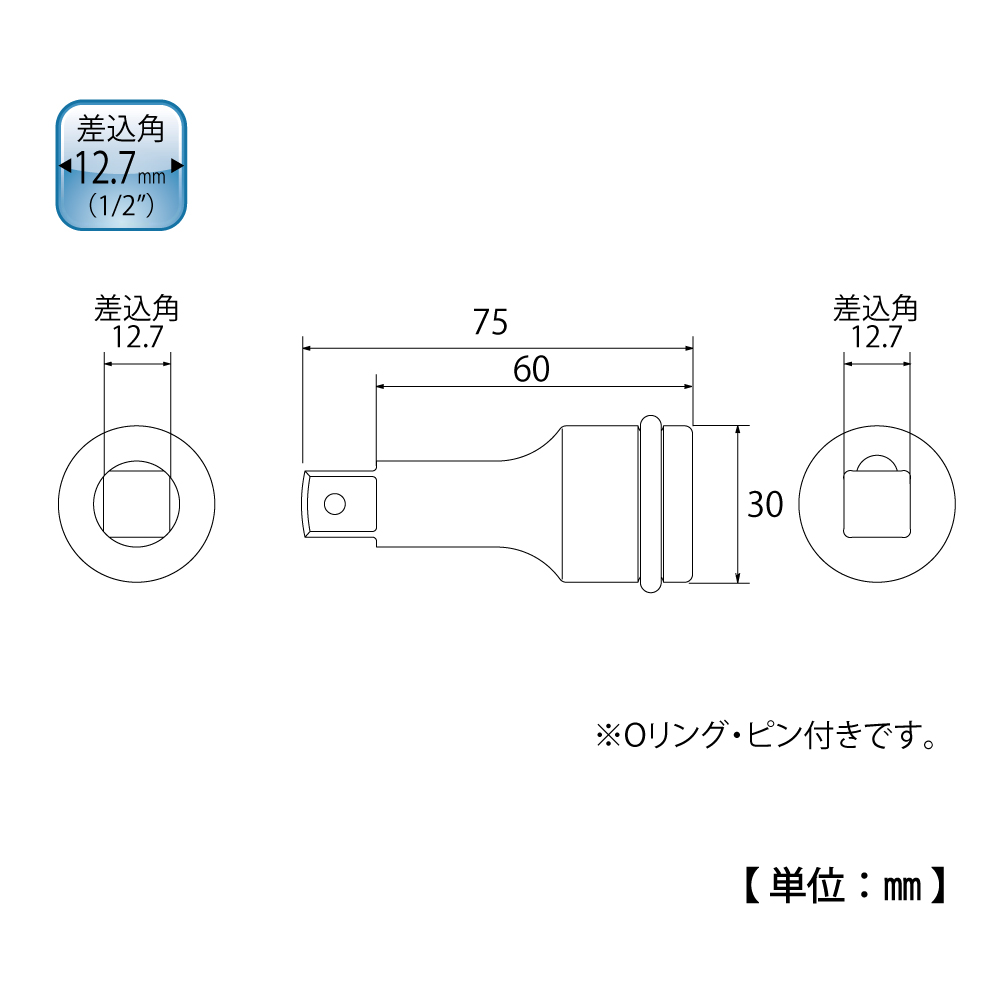 TOP Kogyo PX-4075 Impact Intension Bar (1/2'', 75mm) | EMINKH.COM