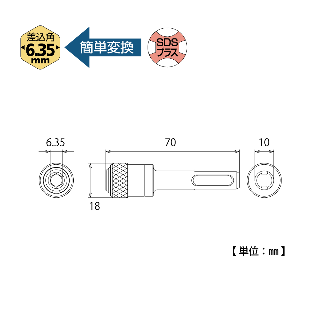TOP Kogyo SDS-635 SDS Plus Shank Adapter for Hammer Drills (70mm, 18mm) | EMINKH.COM