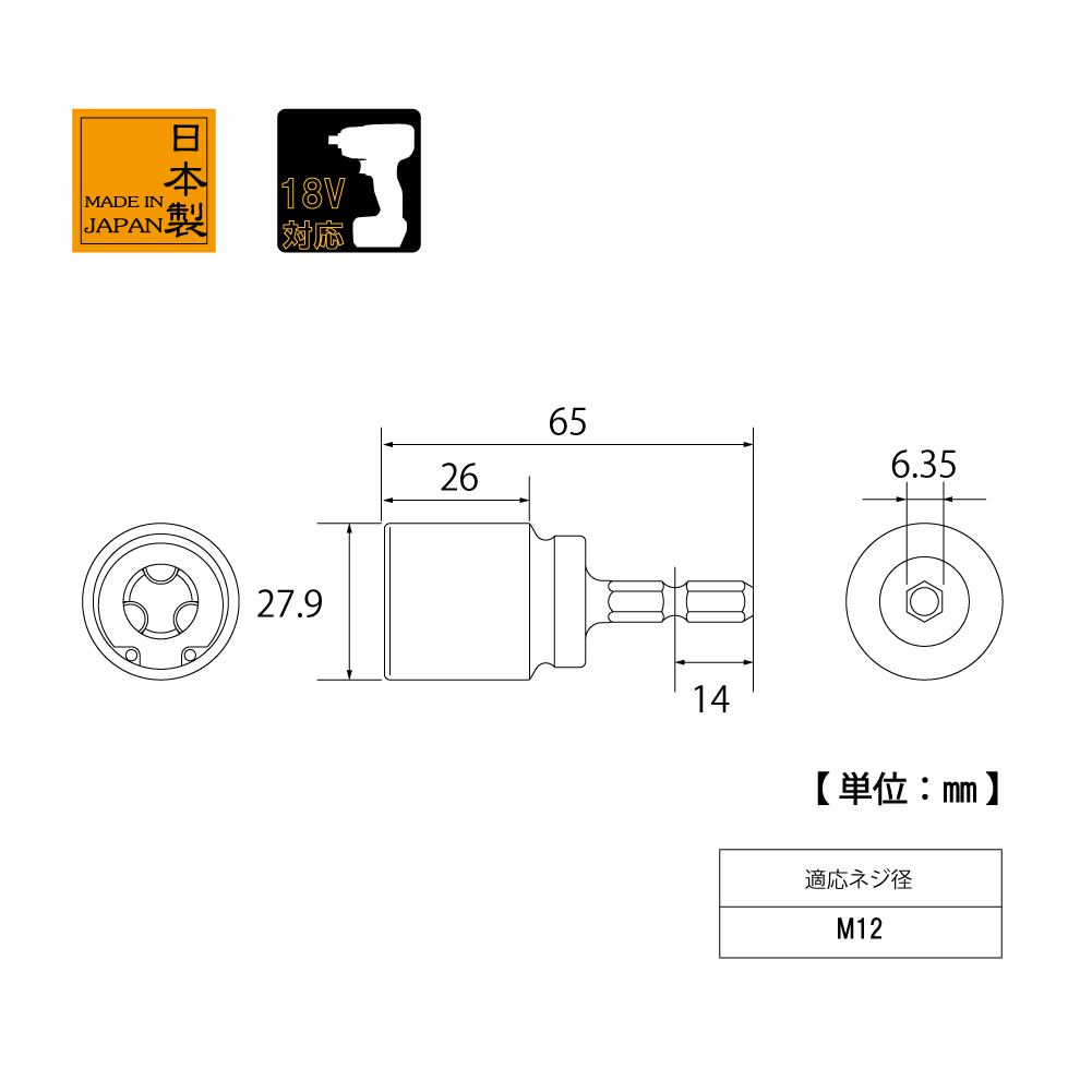 TOP Kogyo ZNS-M12 Fully threaded socket (M12) | EMINKH.COM