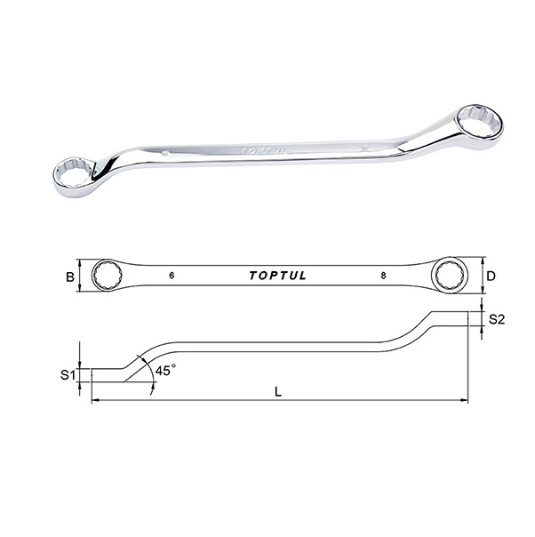 TOPTUL AAAH4146 Double Ring Wrench 45° Offset Mirror Polished (41x46mm) | EMINKH.COM