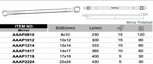 TOPTUL AAAP0810 Flat Type Extra-Long Double Ring Wrench (8x10 mm) | EMINKH.COM