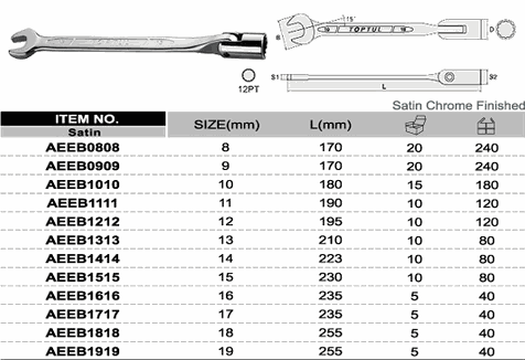 TOPTUL AEEB0808 Swivel-Socket Combination Wrench (8mm) | EMINKH.COM