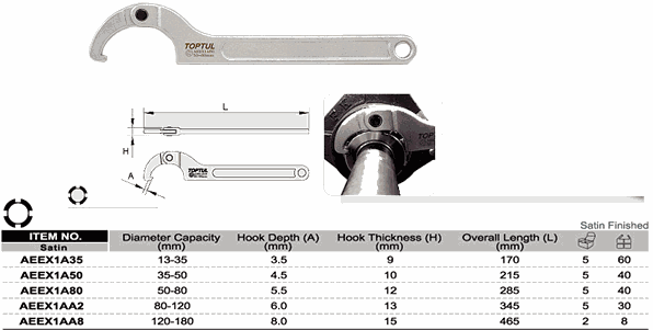 TOPTUL AEEX1A35 Adjustable Hook Spanner Wrench (13~35 mm) | EMINKH.COM