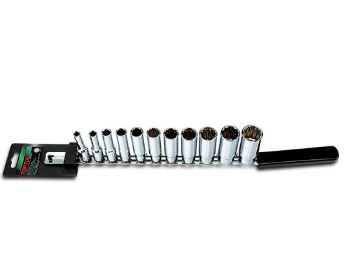 TOPTUL GBAQ1101- 11PCS 3/8inch DR. 12PT Deep Socket Rail Set - SAE | EMINKH.COM