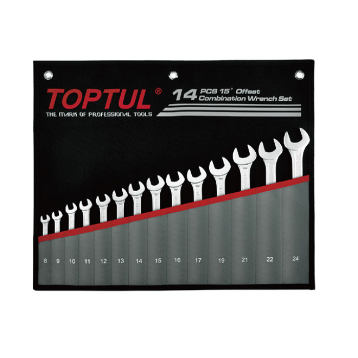 TOPTUL GPCW0801 15° Offset Pro-Line Combination Wrench Set (8pcs, 8~22mm) | EMINKH.COM