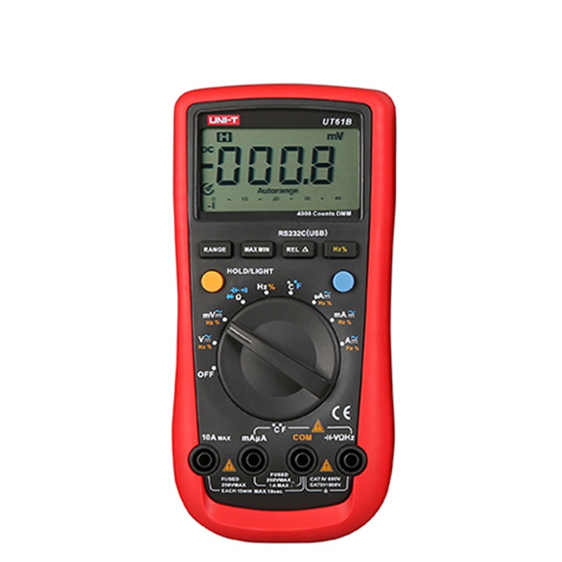 Standard accessories: Battery, test leads, multi-purpose socket, RS-232 interface cable, PC software CD, point contact temperature probe