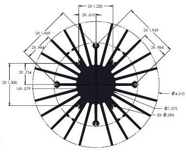 Wakefield Thermal 19754-M-AB W/ANO Heatsinks Radial Fin Heat Sink for LED, 7.5 Inch Fin with Black Anodized | EMINKH.COM