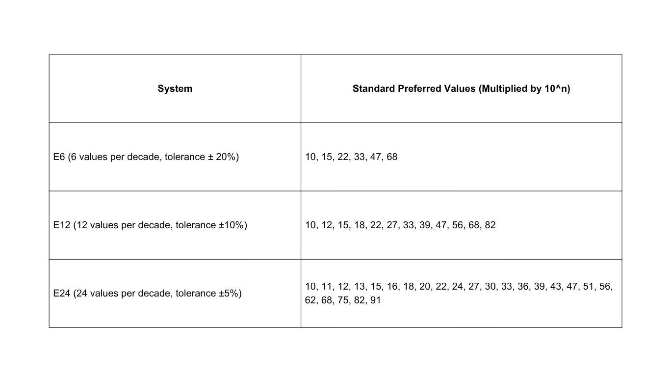 Instead of producing every value from 1 to 100, manufacturers focus only on a specific set of values. This system is based on geometric progressions and logarithmic distribution, ensuring that selected values cover the entire range without excessive overlap or gaps.