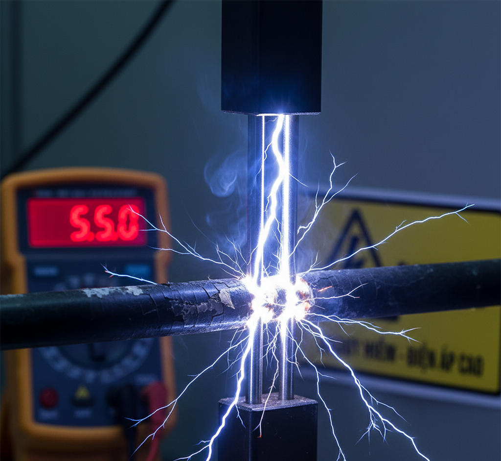 This measurement is prone to error if not performed correctly. Off-center electrode alignment causes uneven field distribution, leading to premature discharge. Poor grounding of the cable or a humid test environment can cause leakage currents on the surface of the sample. Contaminated or greasy samples can also give lower results than the actual results.