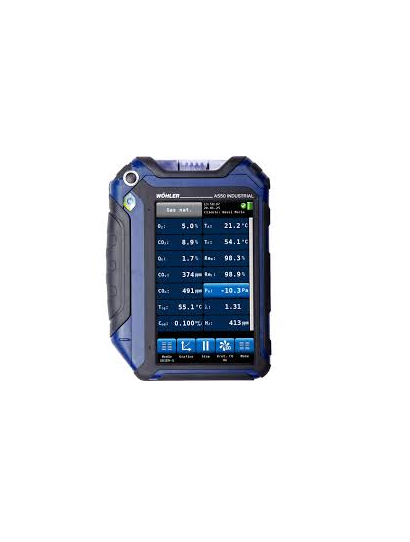 Wöhler A 550 INDUSTRIAL with O2, CO 10.000 ppm with H2 compensation, CO2 NDIR, NO and SO2, WLAN, USB- and IR,