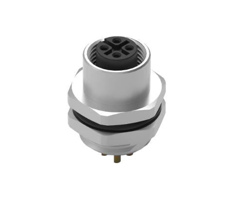 Wurth Elektronik 643060100604 Receptacles WRCIRC M12 Screw Coding A Panel Solder Bucket Metal with Rear Panel Nut PG9 Female connector, polarity 4
