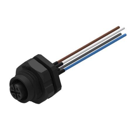 Wurth Elektronik 643421100404 Receptacles WRCIRC M12 Screw Coding A Panel + Wires Panel + Wires Plastic with Front Panel Nut M16 Female connector, polarity 4